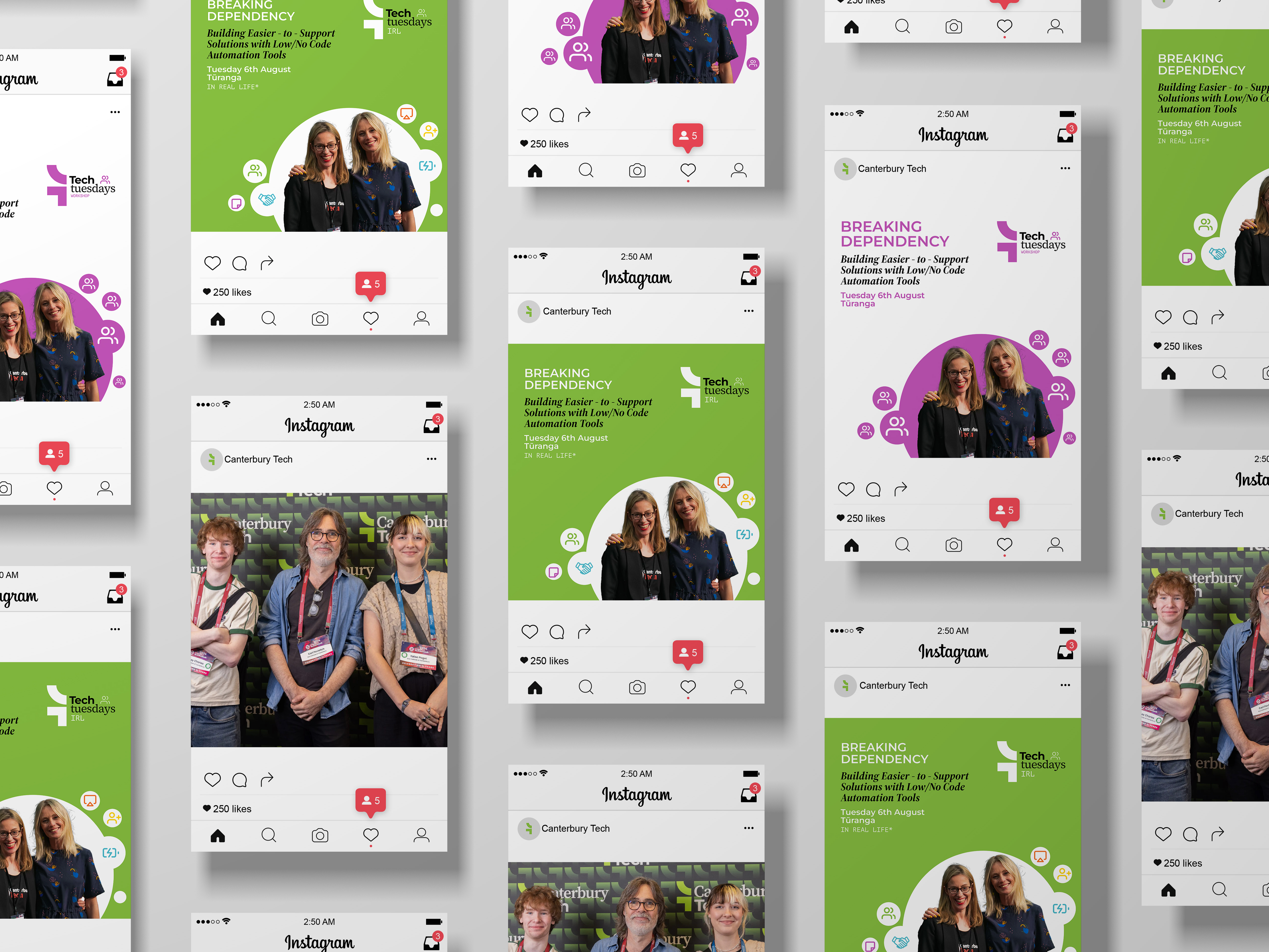 : I helped create a new brand identity system for Canterbury Tech's main brand and social events.